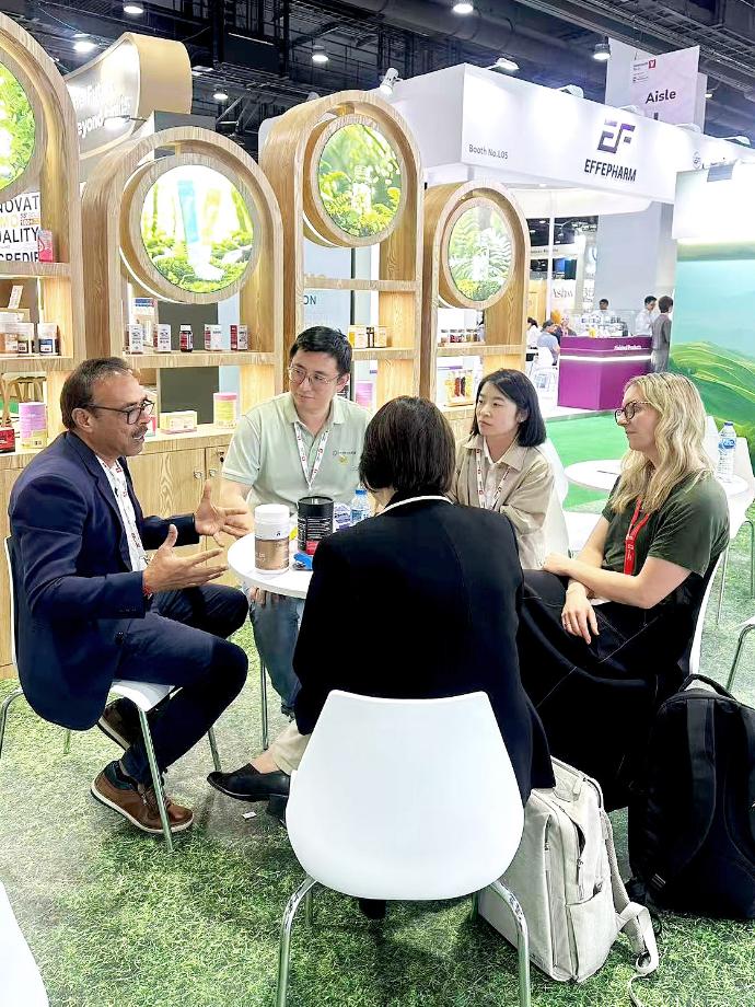Leveraging its “100% Made in New Zealand” advantage, Unipharm showcased advanced production capabilities, premium natural ingredients, and professional R&D expertise at Vitafoods Asia. A cross-functional team—including sales, R&D, supply chain, and e-commerce—participated, alongside New Zealand nutraceutical industry expert Mr. Minesh, to present our comprehensive CDMO/OEM solutions to global attendees.